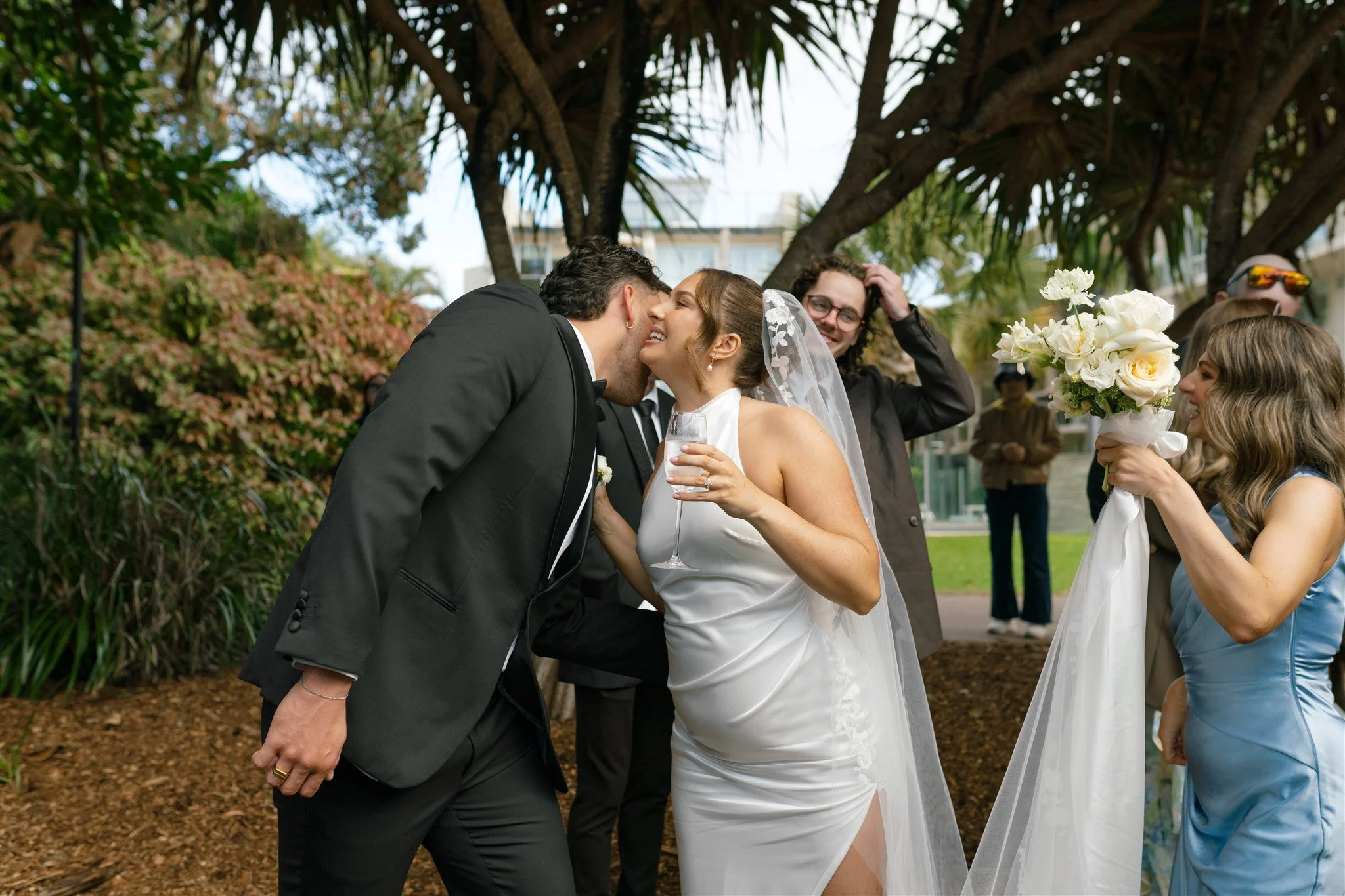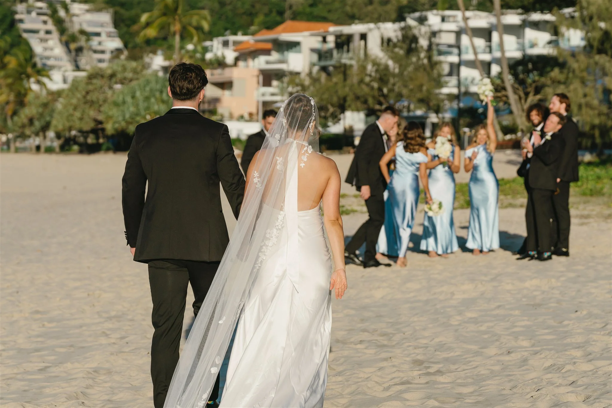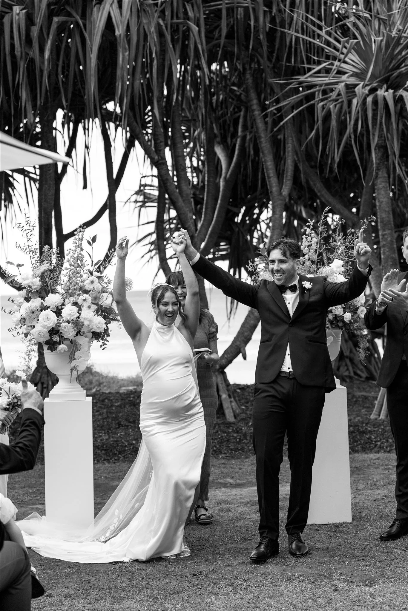 Ceremony Location: Maison La Plage; Reception Venue: Peli’s Noosa; Photographer: Ash & Stone; Styling & Stationary: Lovebird Weddings; Florals: Mondo Floral Designs; Videography: Weddings by Butterscotch; Boat Transfer: Noosa Ferries; Bridal Party Transport: Elite Executive Transfers; Hair: Foxs Lane Styling; Makeup: Hannah Mills Makeup Artistry; Entertainment: Call me Will; Table Linens: Table Art; Cake: Zoe Clark Cakes; Celebrant: Denise Lee