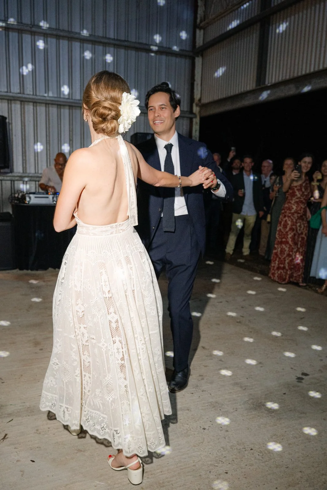 Venue: Private Property; Planning, Styling & Stationery: Lovebird Weddings; Florist: Wylde Magnolia; Photography: Daina Hazel; Celebrant: Family Member; Bridal Gown: Vintage DIOR; Bar Service: The Bartenders Noosa; Catering: The Ohana Group; Reception Entertainment: Stevie G (Melali Music)