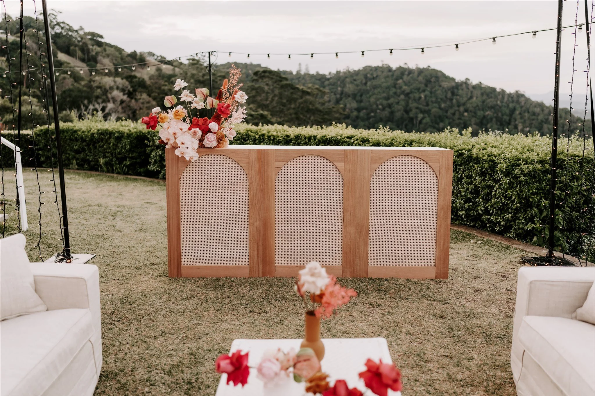 Venue: Maleny Manor; Photographer: Luke Middlemiss; Fairy Light Tunnel: The Event Lane; Stylist: Lovebird Weddings; Florist: Mondo Floral Designs; Stationary: Bluebird Invitations; Plates & Glassware: Table for Louis
