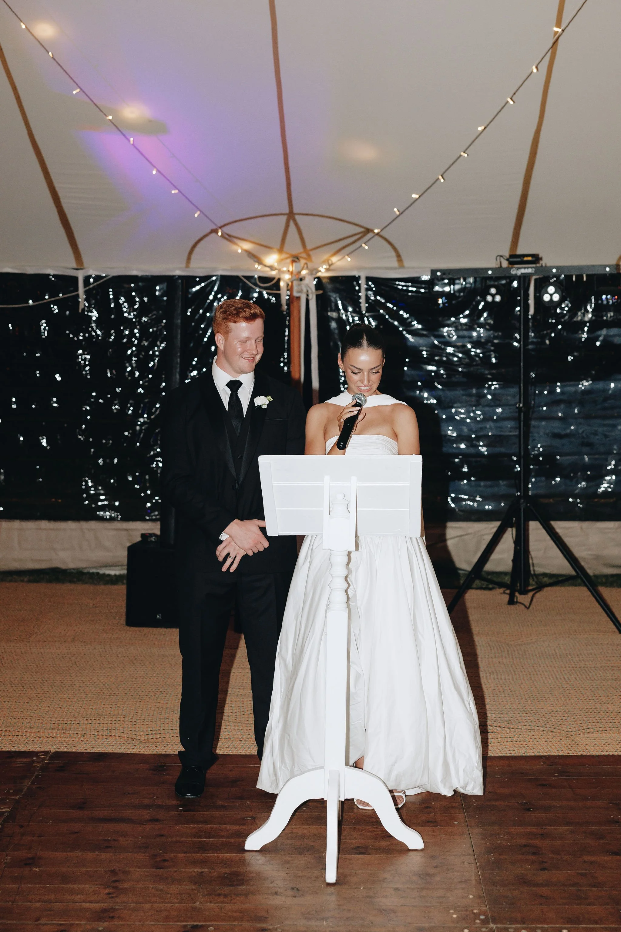 Venue: Eerwah Vale Estate; Planning, Styling & Stationery: Lovebird Weddings; Florist: Mondo Floral Designs; Photography & Film: Aleisha Edwards Weddings; Catering: The Ohana Group; Bar Service: The Bartenders; Marquee: Sperry Tents Sunshine Coast; Hair: Foxs Lane Styling; Makeup: Madeliene J Makeup; Entertainment: Lynch Brothers Trio & Sounds Like Michael; Celebrant: Kieran Wallis; Transport: Wheels to Weddings; Table Linens: Table Art